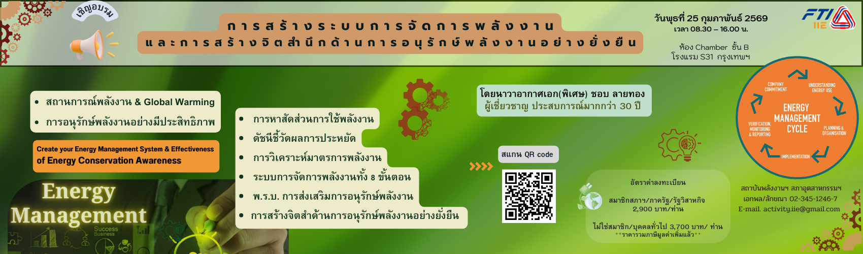 🌈 สถาบันพลังงานฯ สภาอุตสาหกรรมฯ ขอเชิญอบรมเรื่อง “การสร้างระบบการจัดการพลังงานและการสร้างจิตสำนึกด้านการอนุรักษ์พลังงานอย่างยั่งยืน”