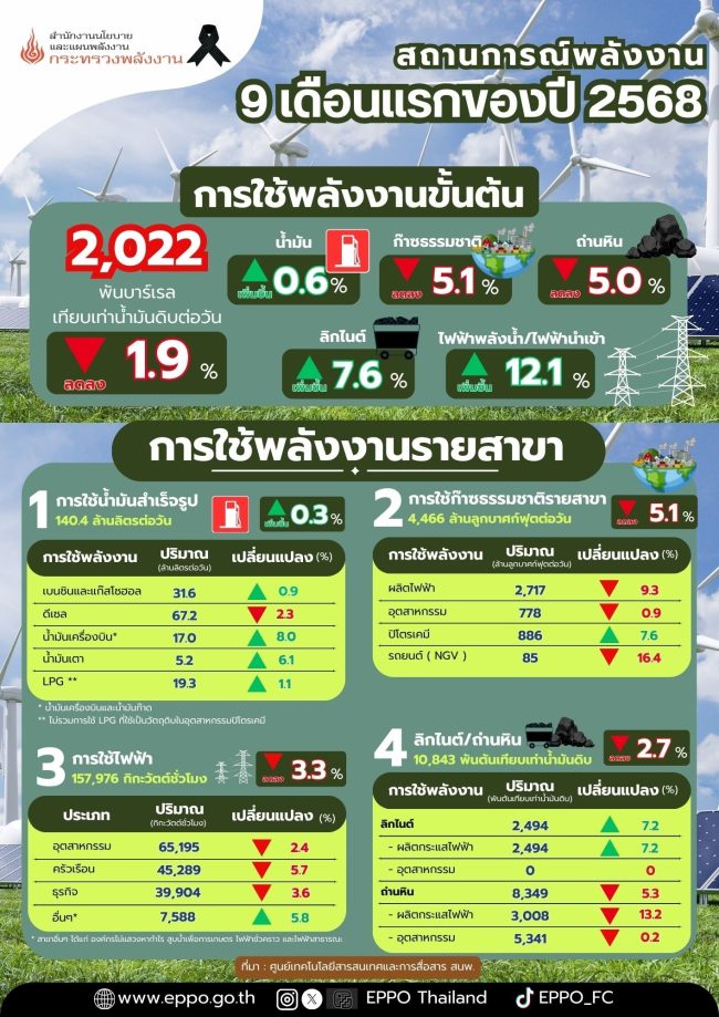 สนพ. เผยสถานการณ์พลังงาน 9 เดือนแรก ปี 2568 การใช้พลังง…