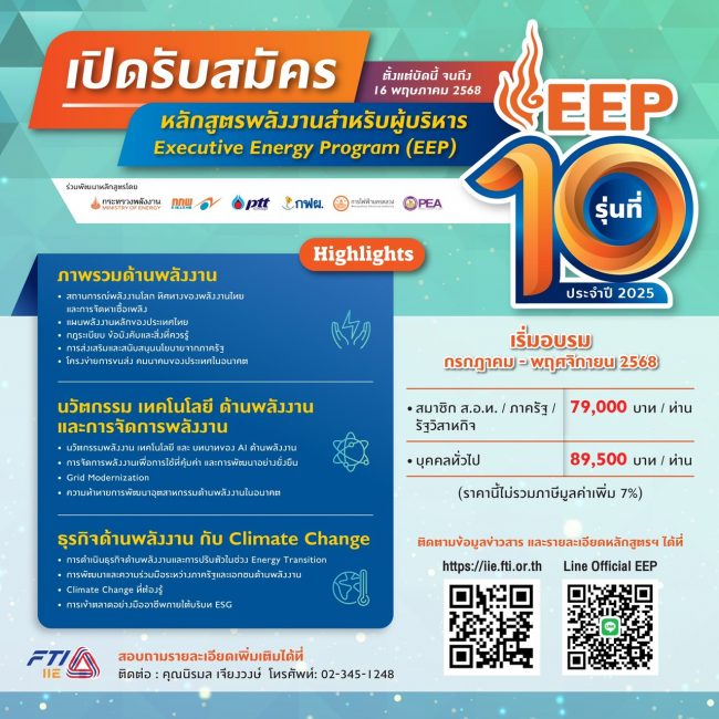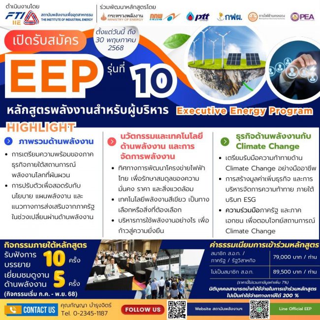 เริ่มต้นขึ้นอย่างเป็นทางการแล้ว สำหรับหลักสูตรพลังงานสำหรับผู้บริหาร Executive Energy Program (EEP) รุ่นที่ 10 ประจำปี 2025