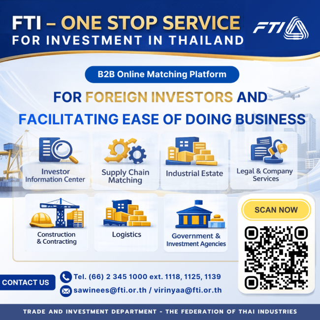 ขอเชิญสมัครเข้าร่วมกิจกรรม Business Matching (Online)ผ่าน แพลตฟอร์มศูนย์บริการธุรกิจครบวงจร เพื่อพบปะเจรจากับ นักลงทุนจากประเทศญี่ปุ่น ข่าวประชาสัมพันธ์By iieadmin20205 เมษายน 2026📢 สิทธิพิเศษสำหรับสมาชิกสภาอุตสาหกรรมแห่งประเทศไทย (ส.อ…
