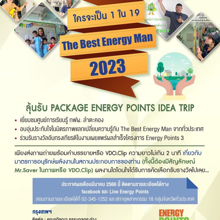 ก.พ.222023 ข่าวประชาสัมพันธ์ ขอเชิญเข้าร่วมงานสัมมนาเผยแพร่ผลสำเร็จของโครงการสนับสนุนการอนุรักษ์พลังงานและลดต้นทุนในอุตสาหกรรมขนาด SME (Energy Points 3)