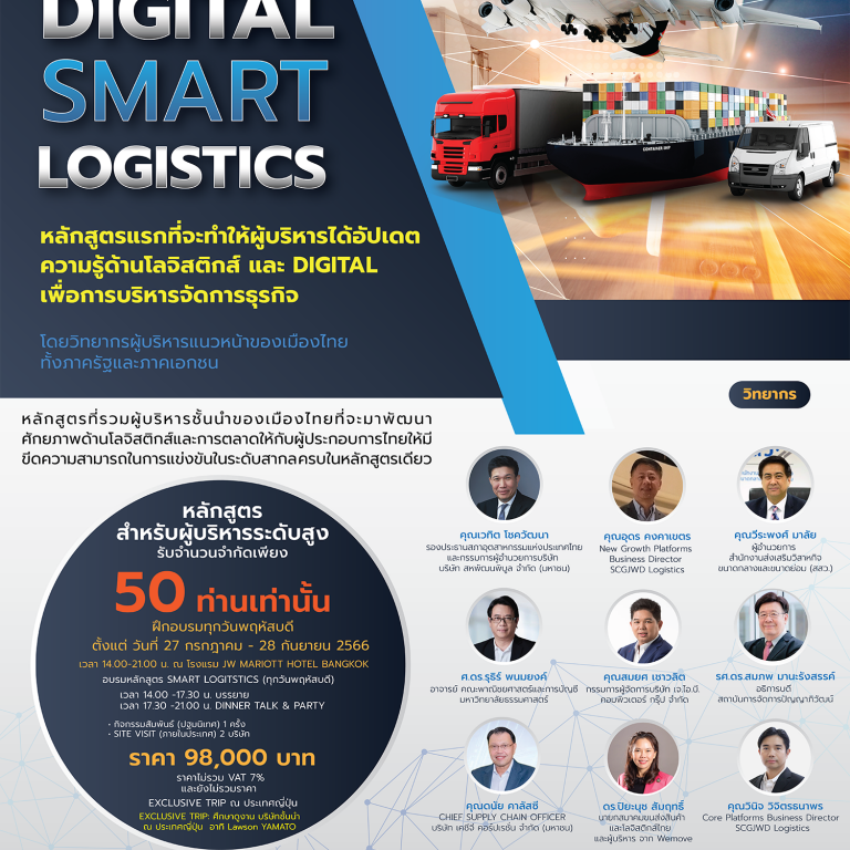 มิ.ย.202023 ข่าวประชาสัมพันธ์ โครงการ Digital Smart Logistics หลักสูตรแรกที่จะทำให้ผู้บริหารได้อัพเดทความรู้ด้านโลจิสติกส์ และ Digital เพื่อการบริหารจัดการธุรกิจ