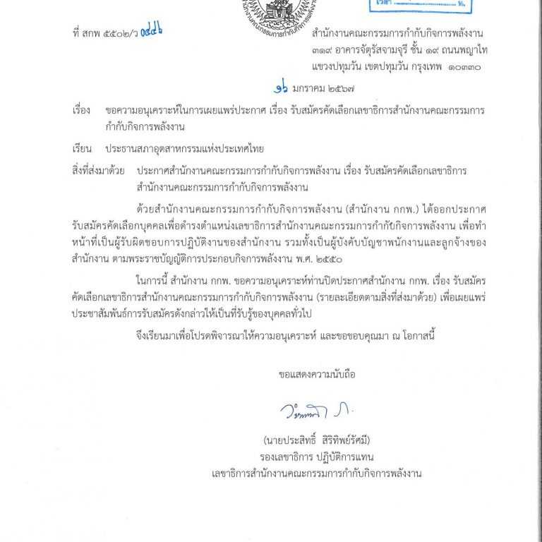 มิ.ย.72024 ข่าวประชาสัมพันธ์ สมาคมบริษัทจัดการพลังงานไทย ขอเชิญชวนท่านเข้าร่วมอบรมพร้อมทดสอบเพื่อรับใบรับรองหลักสูตร ผู้วิเคราะห์การวัดค่าและพิสูจน์ผลประหยัดพลังงานตามมาตรฐาน