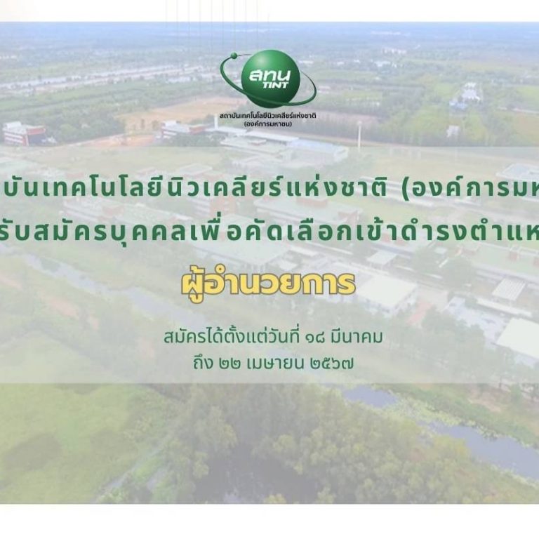 มี.ค.312024 ข่าวประชาสัมพันธ์ สถาบันเทคโนโลยีนิวเคลียร์แห่งชาติ (องค์การมหาชน) รับสมัครบุคคลเพื่อคัดเลือกเข้าดำรงตำแหน่ง ผู้อำนวยการ